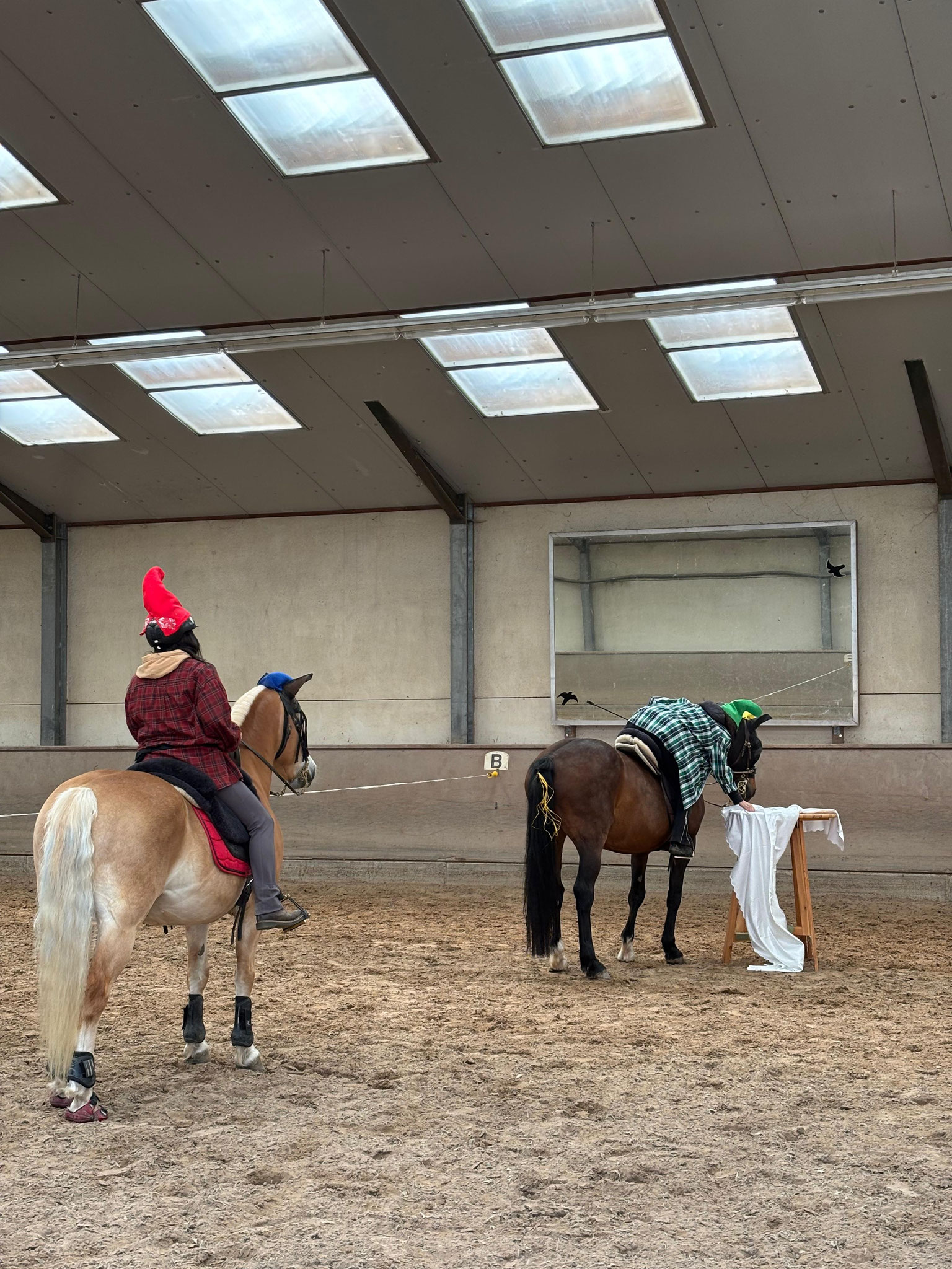 Zum Abschluss des Ritts bekamen die Teams noch die Aufgabe ihre Fähigkeiten und Kreativität in einer kleinen Aufführung darzubieten. Die Zuschauer waren begeistert von den verschiedenen Darbietungen. Manche Teams haben eine Geschichte erzählt und mit ihren Pferden nacherzählt, andere haben ein spontanes Pas de Deux hingelegt und es gab auch Reiter-Pferd-Paare die sich in der Boden- und Freiarbeit präsentiert haben.